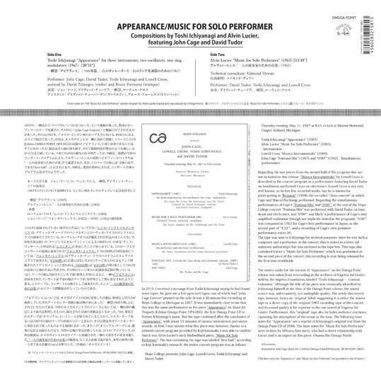 Appearance / Music for Solo Performer [OMEGA & EM RecordsのコラボLP!]
